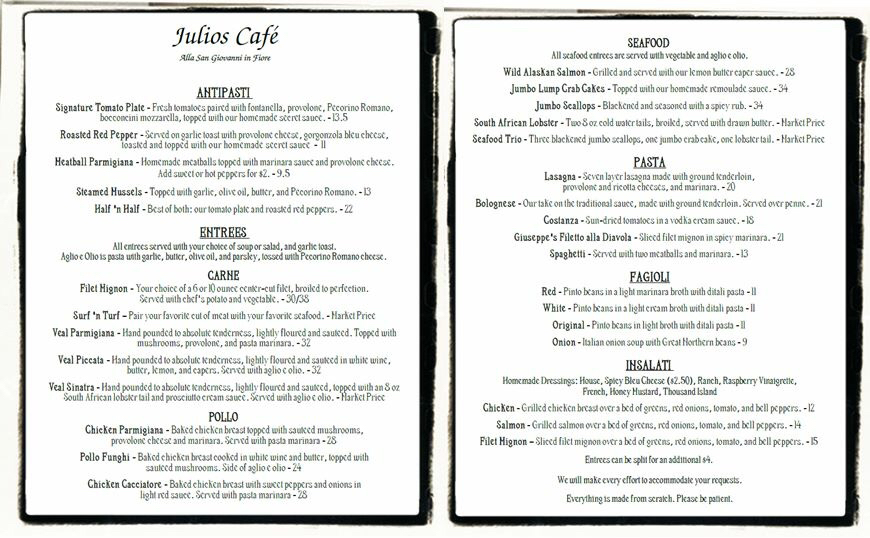 Julio's Café Menu